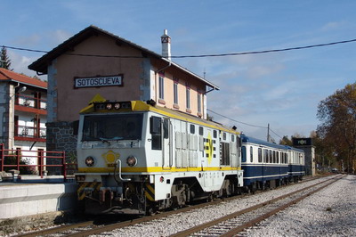 Llegamos a la estación de Sotoscueva en donde nuestros amigos esperaban al tren, pues habréis de saber que si esta excursión fue masivamente disfrutada desde el interior de los coches salones, igualmente lo fue por muchos aficionados que seguían la composición por las carreteras colindantes, para obsequiarnos con fotografías tan bonitas como las siguientes.