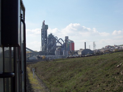 Ya observamos la impresionante silueta de la cementera de Mataporquera (Cementos Alfa) junto a la recientemente reformada estación de Mataporquera.