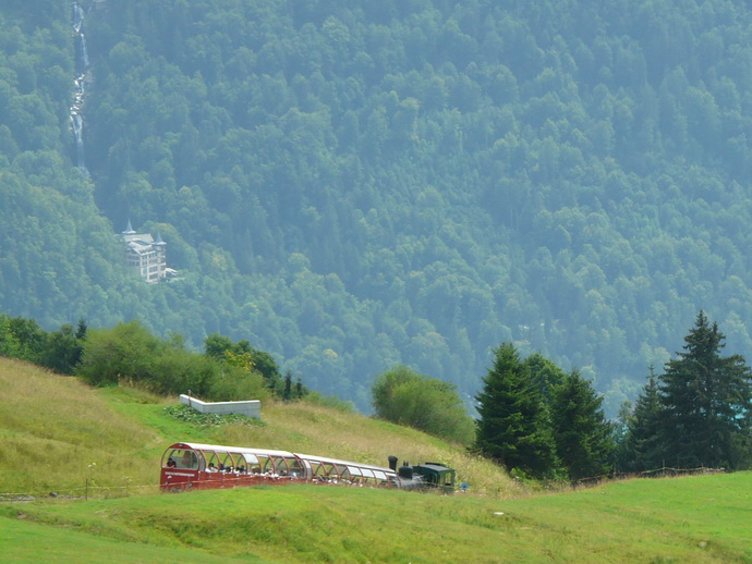 69. En esta otra toma captamos al fondo el Hotel Giessbach y sus afamadas cataratas, donde se sitúa la estación superior del funicular.